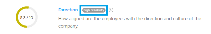 For example, data with high reliability is one that is representative of the group and we determine this by having more than 60% participation or containing more than 30 responses from different people in the period evaluated.
